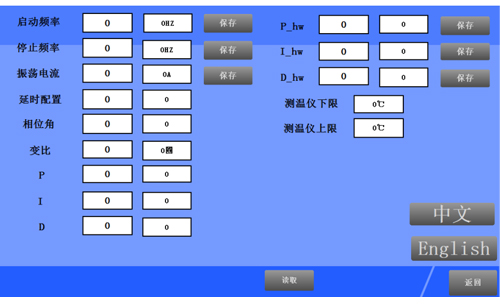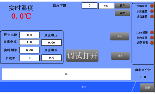 本電源有負(fù)載自適應(yīng)功能,在不上主電狀態(tài)下,調(diào)整好負(fù)載之后,在電源內(nèi)控模式下加熱,上位顯示屏自動給出負(fù)載的匹配狀態(tài)及諧振頻率供用戶參考調(diào)試。